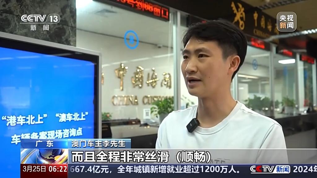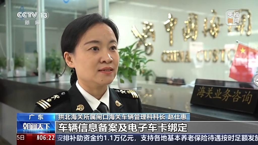 拱北海关所属闸口海关车辆惩处科科长 赵仕惠:针对“北上”车辆的特质,咱们量身定制了备案历程,一次受理即可完成车主、车辆信息备案及电子车卡绑定,单宗业务办理时效比之前再进步25%。